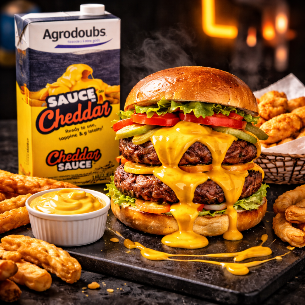 Premium ready-to-use cheddar cheese sauce made in France with real cheddar. Shelf-stable Tetra Brik packaging — no fridge needed, no cooking required. Use hot or cold: pour, drizzle or gratinate instantly. Rich, creamy American-style cheddar flavour perfect for loaded fries, burgers, nachos, mac & cheese, hot dogs and French tacos. Saves time and labour costs — no prep, no waste, consistent quality every serve. Ideal for restaurants, hotels, burger joints, fast food, street food vendors and caterers.