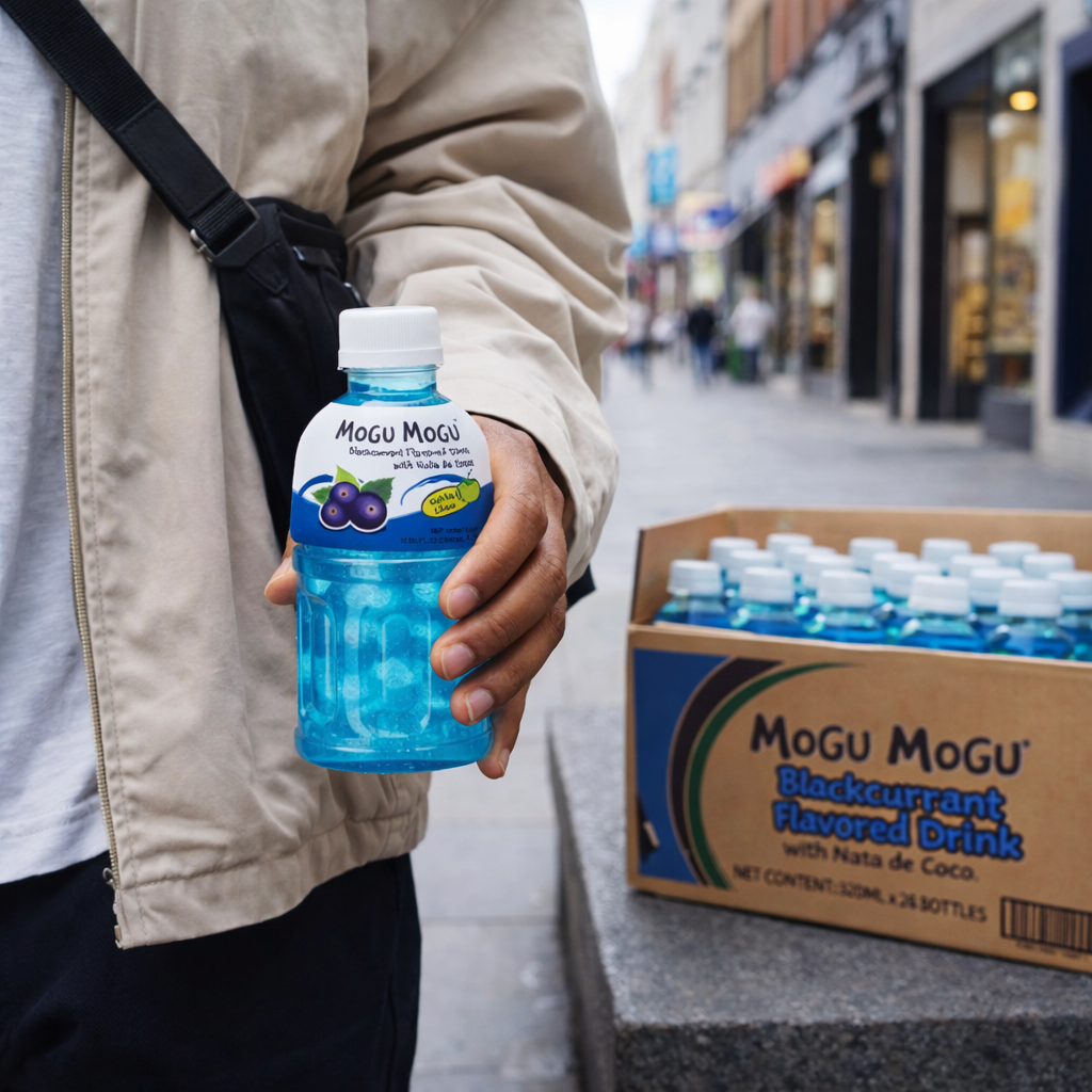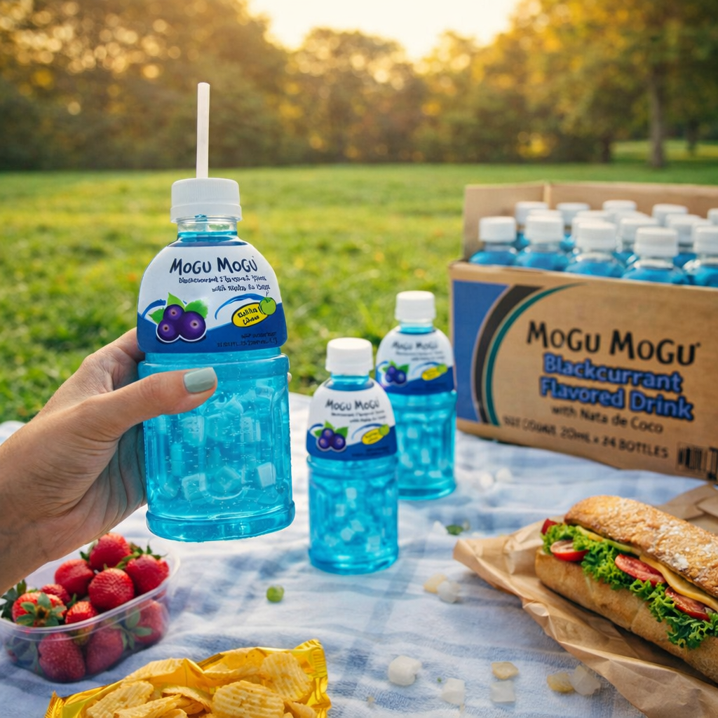 Mogu Mogu Blackcurrant Flavoured Drink with Nata de Coco — the iconic Thai sip-and-chew beverage in a full 24-bottle case. Each 320ml bottle is packed with 25% chewy coconut jelly pieces and bold blackcurrant flavour for a refreshing, fun drinking experience. Halal certified, vegan-friendly, zero fat and only 50 kcal per 100ml. A TikTok viral sensation and the UK’s fastest growing soft drink brand. Ideal for juice and nata de coco lovers. Stock up for home, parties, lunch boxes or resale.